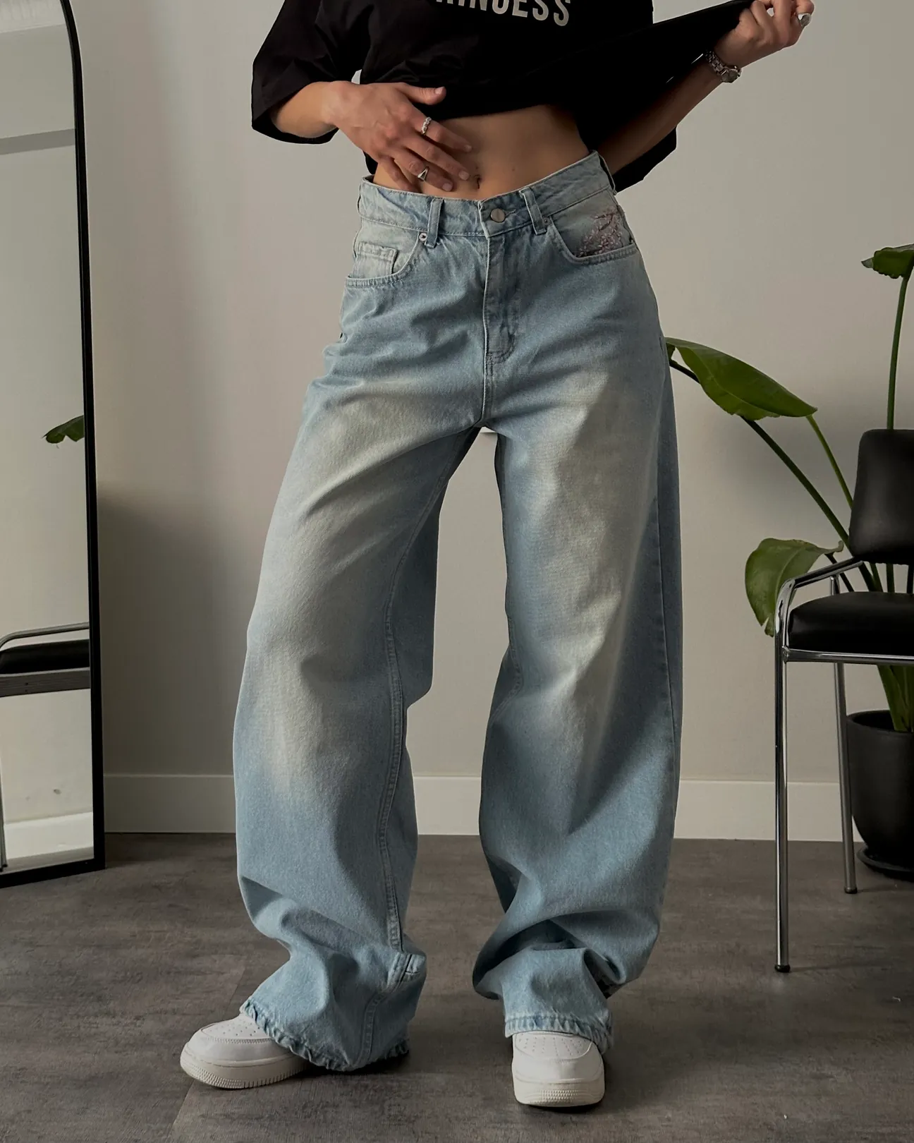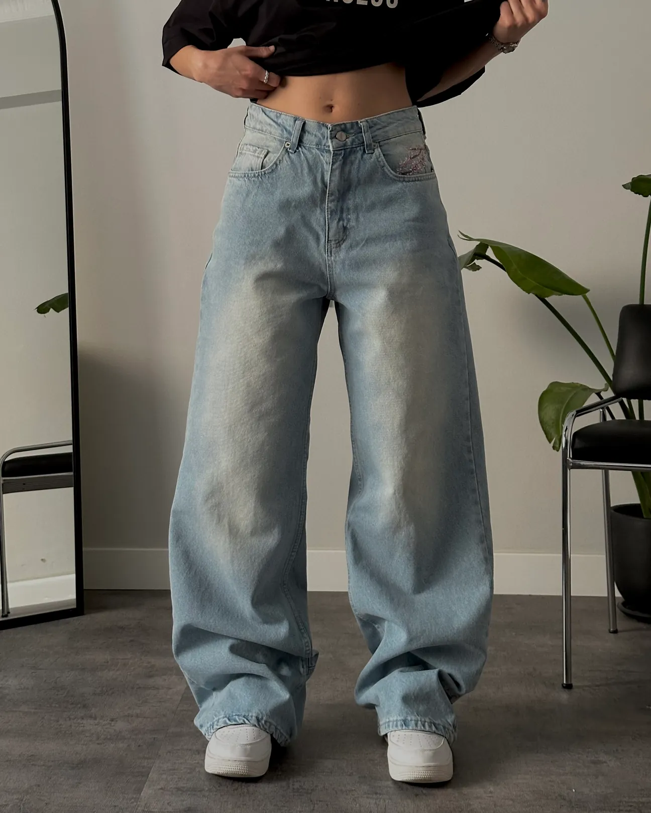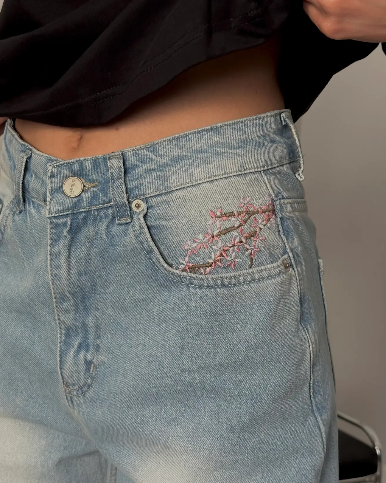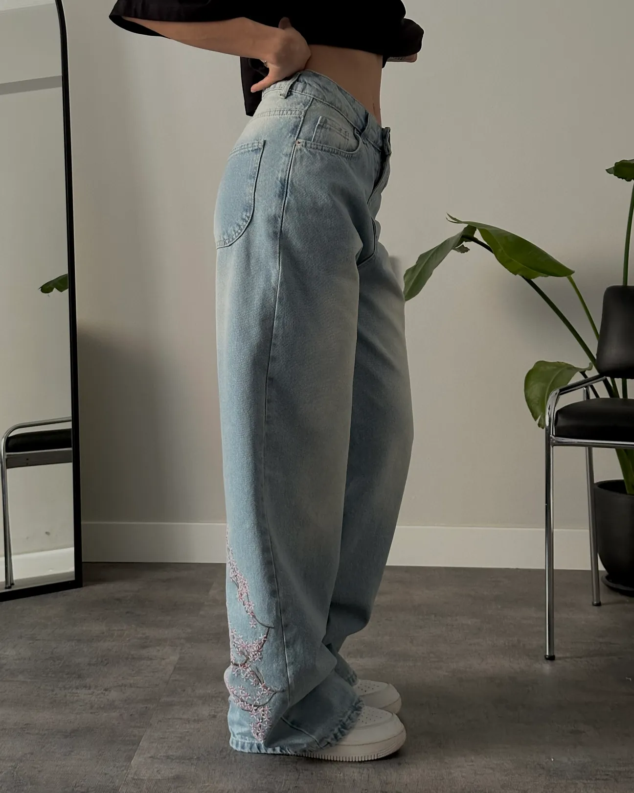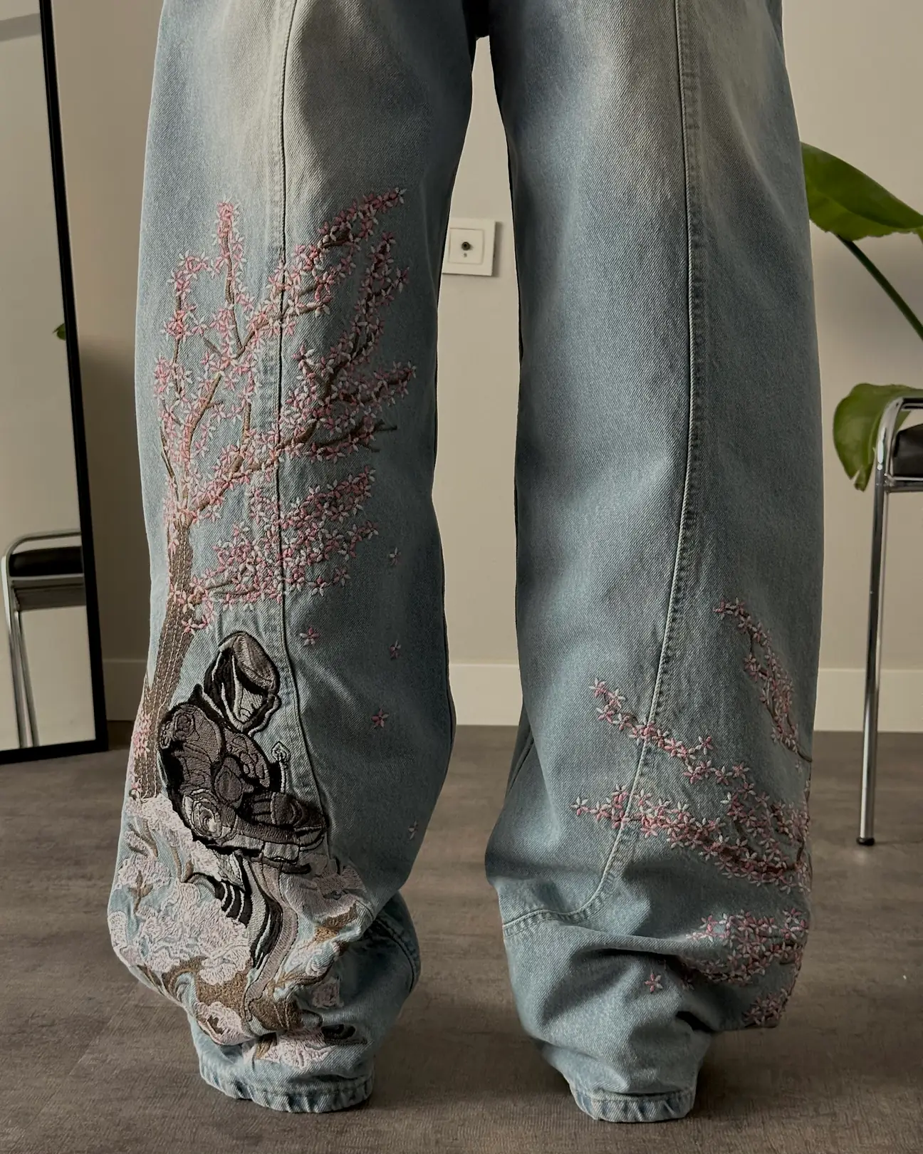 Sakura Embroidery Baggy Fit Jeans